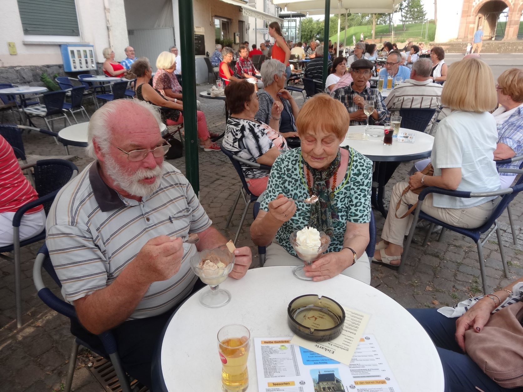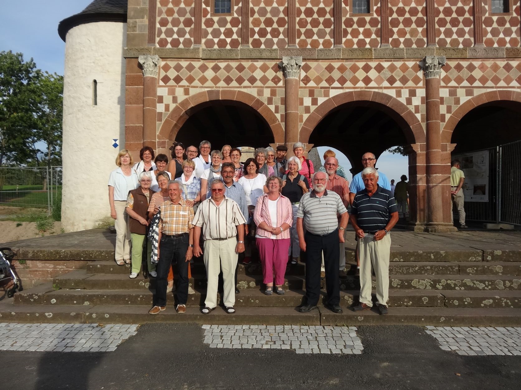 Als Überraschung und Abschluss des Ausflugs hatte unser Vereinsmitglied und langjähriger Organisator des Jahresausflugs, Wolfgang Stelzer, noch den Besuch des Weltkulturerbes Kloster Lorsch ins Programm genommen. Bei strahlendem Sonnenschein ließen wir uns Kaffee, Kuchen und Eis in einem Straßencafé schmecken und genossen den Blick auf die berühmte Klosterhalle.